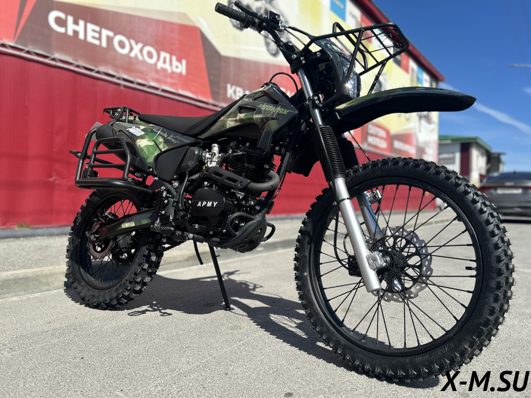 Отличный аппарат за свои деньги! PROMAX ARMY 250 оправдал все ожидания. Рама реально крепкая, выглядит брутально. Тормоза огонь, останавливает резко и предсказуемо. Сиденье удобное, не скользит. Цепь Choho работает тихо и плавно. Минимализм электроники - это огромный плюс в плане надежности. Для бездорожья - самое то! Единственное – хотелось бы электростартер, но в целом, все супер!